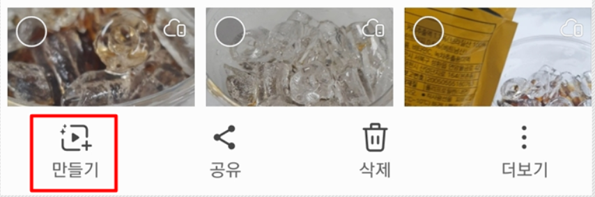 3. 사진을 선택하면 메뉴 하단에 만들기 버튼이 보입니다.