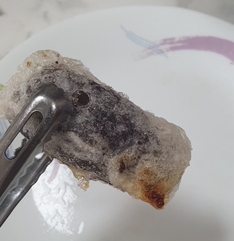 게다가 튀김옷의 식감도 밀가루 튀김과 달리 찹쌀탕수육을 먹는 것처럼 굉장히 쫄깃합니다.