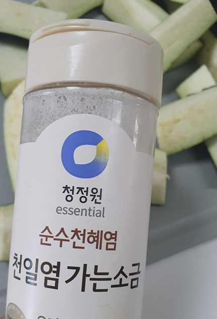 이때 소금은 조금씩 고루 뿌려주는 것이 포인트인데요, 가지 자체의 수분을 약간 빼면서 튀길때 더 맛있게 구워집니다. 기호에 따라서 후추도 살짝 간을 해주면 좋을 것 같습니다.