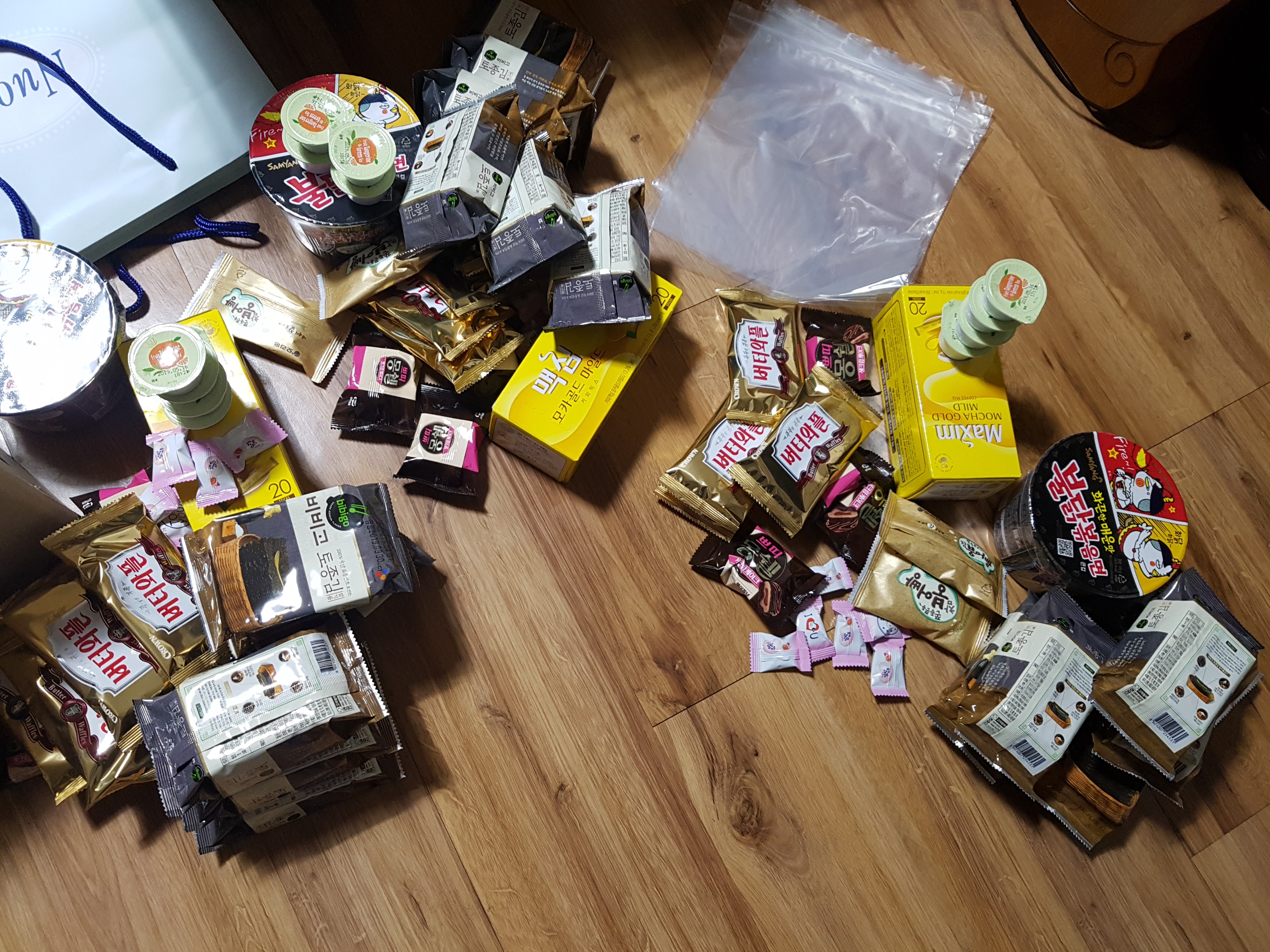 외국에서 지내는 동안 사귄 친구들이 여럿 있는데 친구들을 방문하게 되는 일이 생길 때마다 선물을 사 가고는 합니다. 소소한 간식이나 먹거리부터 기념품이나 필요한 제품들을 사주는데 이번에는 한 번에 여러 명의 친구들을 만나게 되어서 한국 먹거리 위주로 선물꾸러미를 만들었습니다.