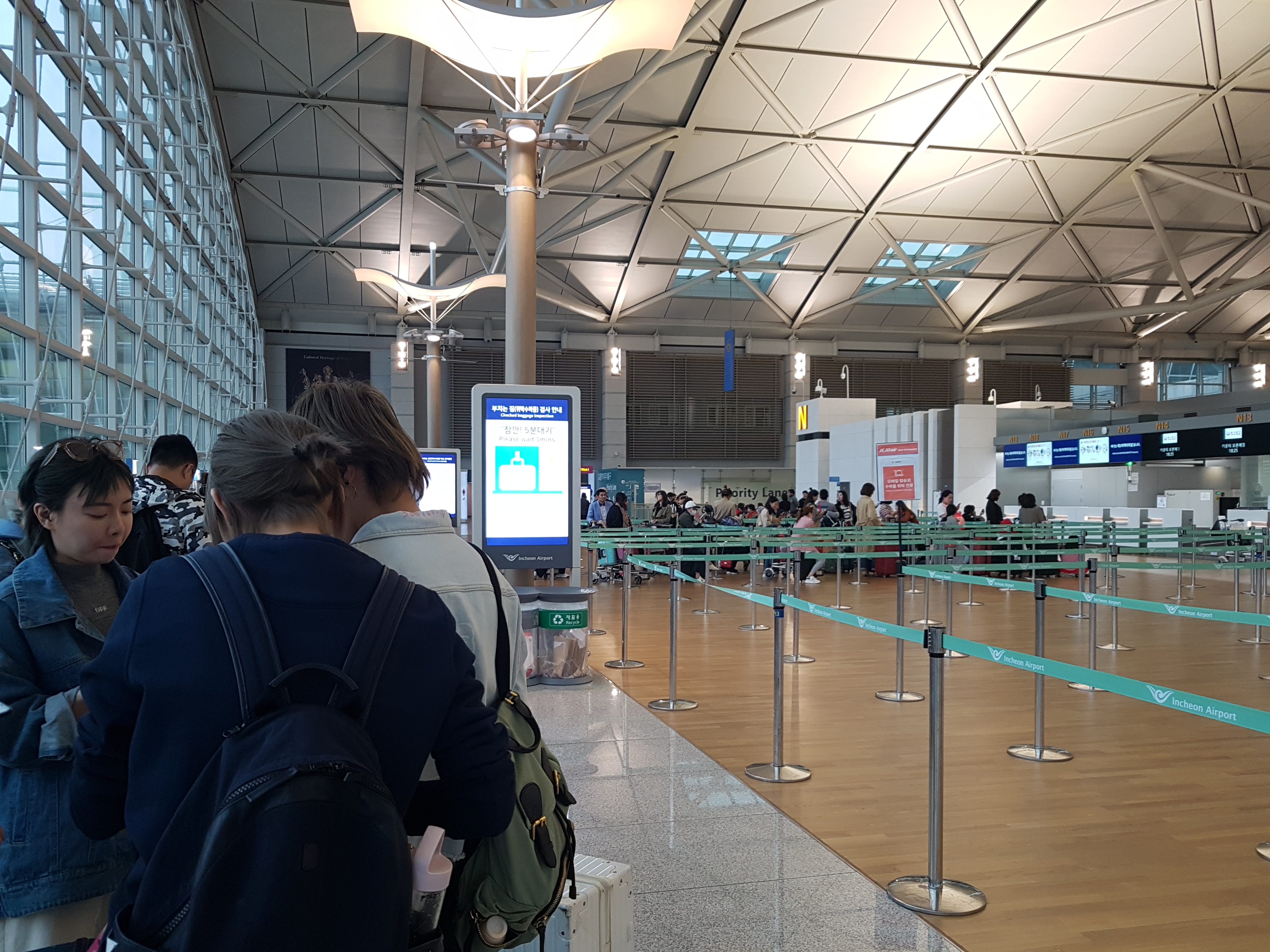 비행시간보다 거의 4시간쯤 전에 출발해서 여유있게 수속 데스크를 찾아갔습니다. 저렴한 항공사여서인지 수속데스크는 완전 끝자락에 있었어요. 공항에 들어서서 수속데스크까지 한참을 걸어갔어요. 시간은 여유있게 수속데스크 위치등도 미리 파악해두시는게 좋을 듯 합니다. 수속데스크는 아직 열린 상태가 아닌데도 엄청 긴 줄이 서 있어서 깜짝 놀랐어요. 탑승하려고 대기중인 분들은 한국분들보다는 중국분들 비중이 훨씬 높은 것 같기는 했는데 거의 첫번째로 수속을 하게 될거라 생각했는데 한참 나중에나 줄을 서게되었다는 사실에 놀라며 줄을 기다렸습니다.
