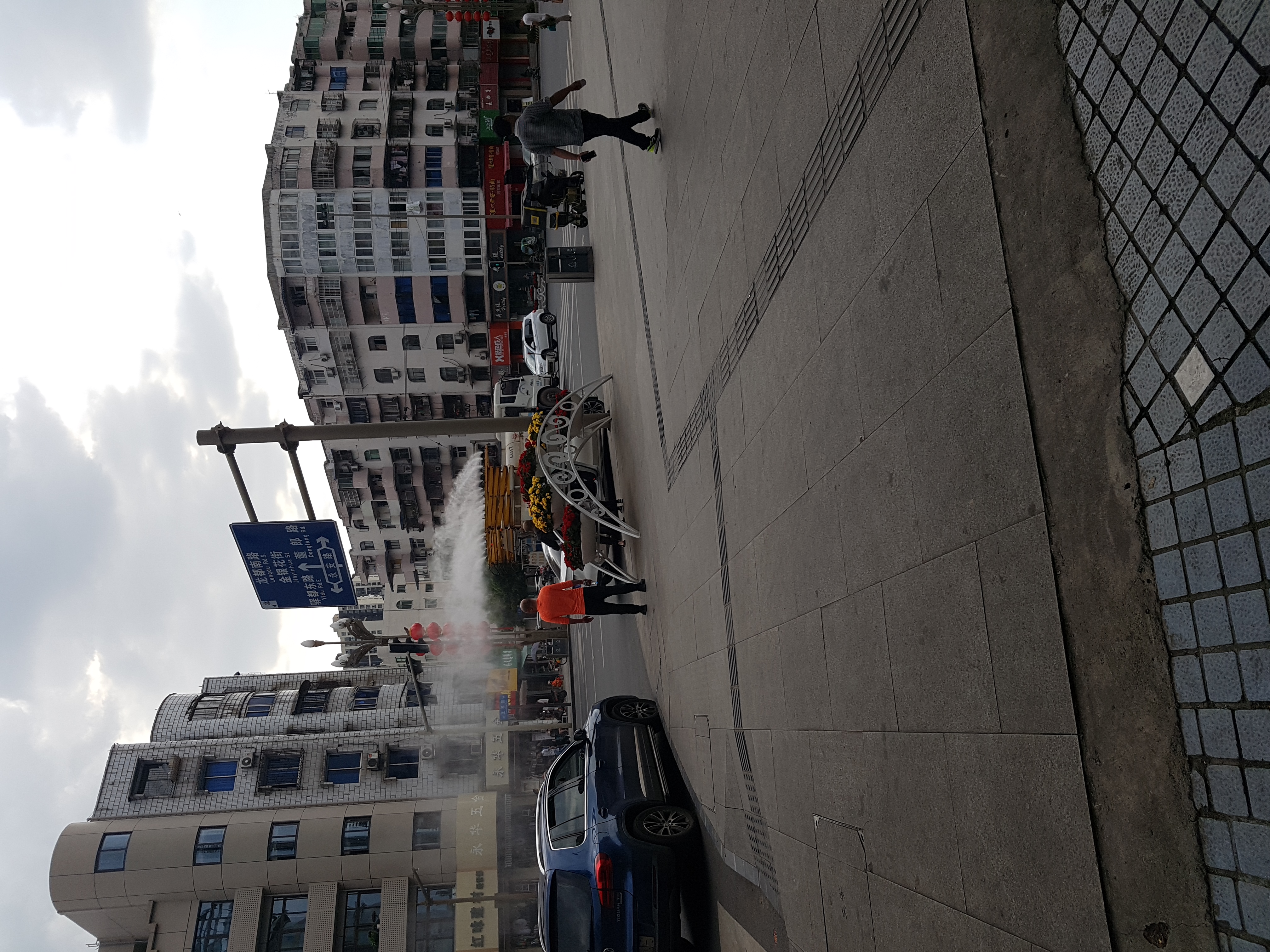 이미 길거리 간식거리로 배가 부른 상태로 친구가 일하는 곳 근처의 쇼핑몰로 향했습니다. 길거리도 너무 깔끔하고 넓찍하고 날씨도 좋아서 신이납니다. 일본에 가본적은 없지만 커다란 유니클로 광고판 때문인지 어째서 일본거리 같은 느낌이다 라는 생각을 하며 열심히 사진을 찍어봅니다. 큰 도로나 길목에서 자주 볼 수 있는 홍등 디자인의 가로등. 중국인들의 빨간색 사랑이 느껴집니다.