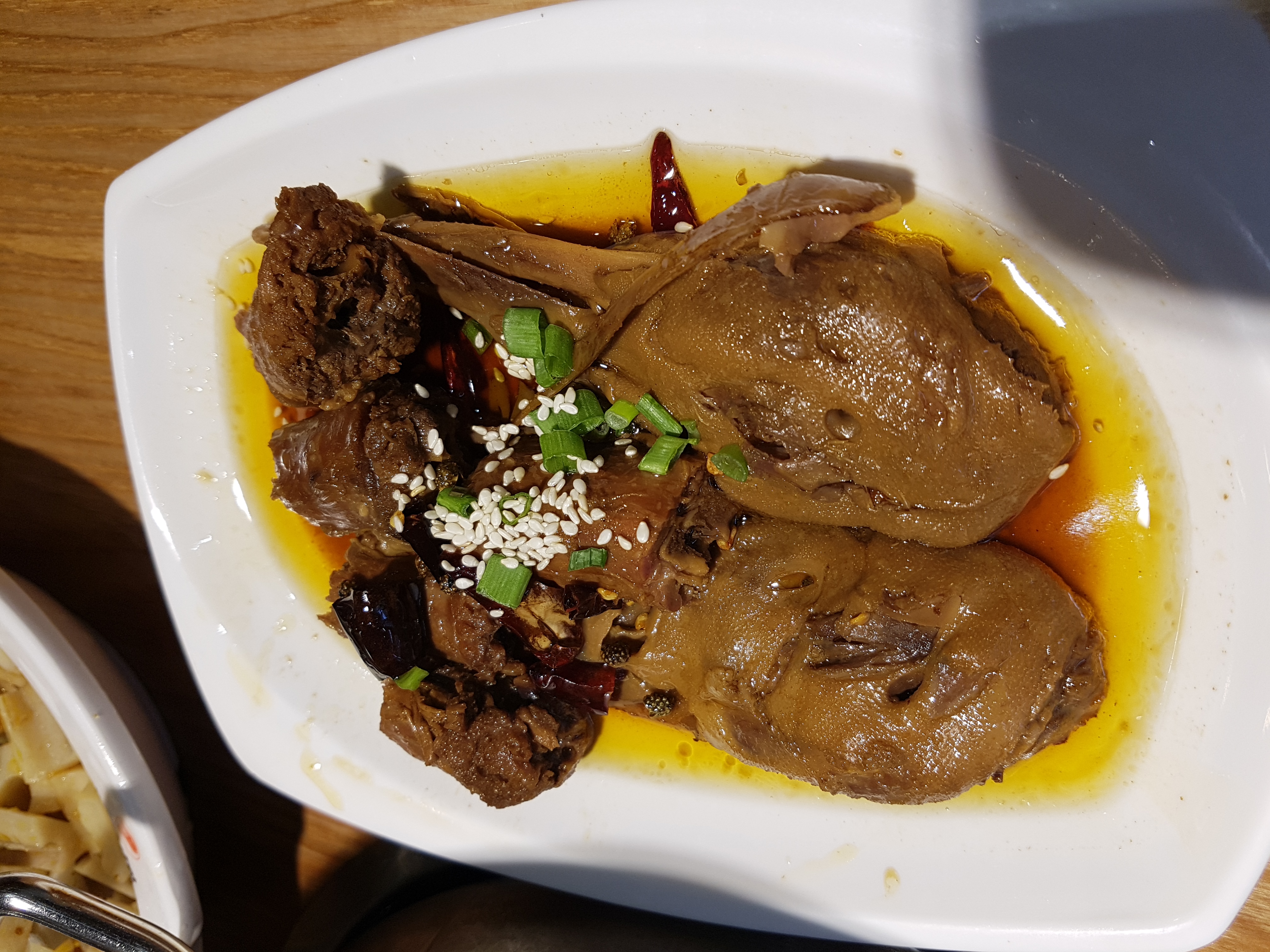 일단 한상 가득 차려져 나오는 밑반찬들과 샤브샤브. 서비스로 나오는 메뉴 중 눈에 띄던 것은 오리 머리와 목. 한번도 먹어보지 않았던 메뉴라면 무조건 좋아하며 시도해 봅니다. 목부분 살이야 치킨 먹을때도 좋아하는 부위라 맛있었고 머리도 처음 먹어보는 부위였지만 괜찮았어요. 적당히 짭쪼롬해서 밥이 생각나는 맛 이랄까요?