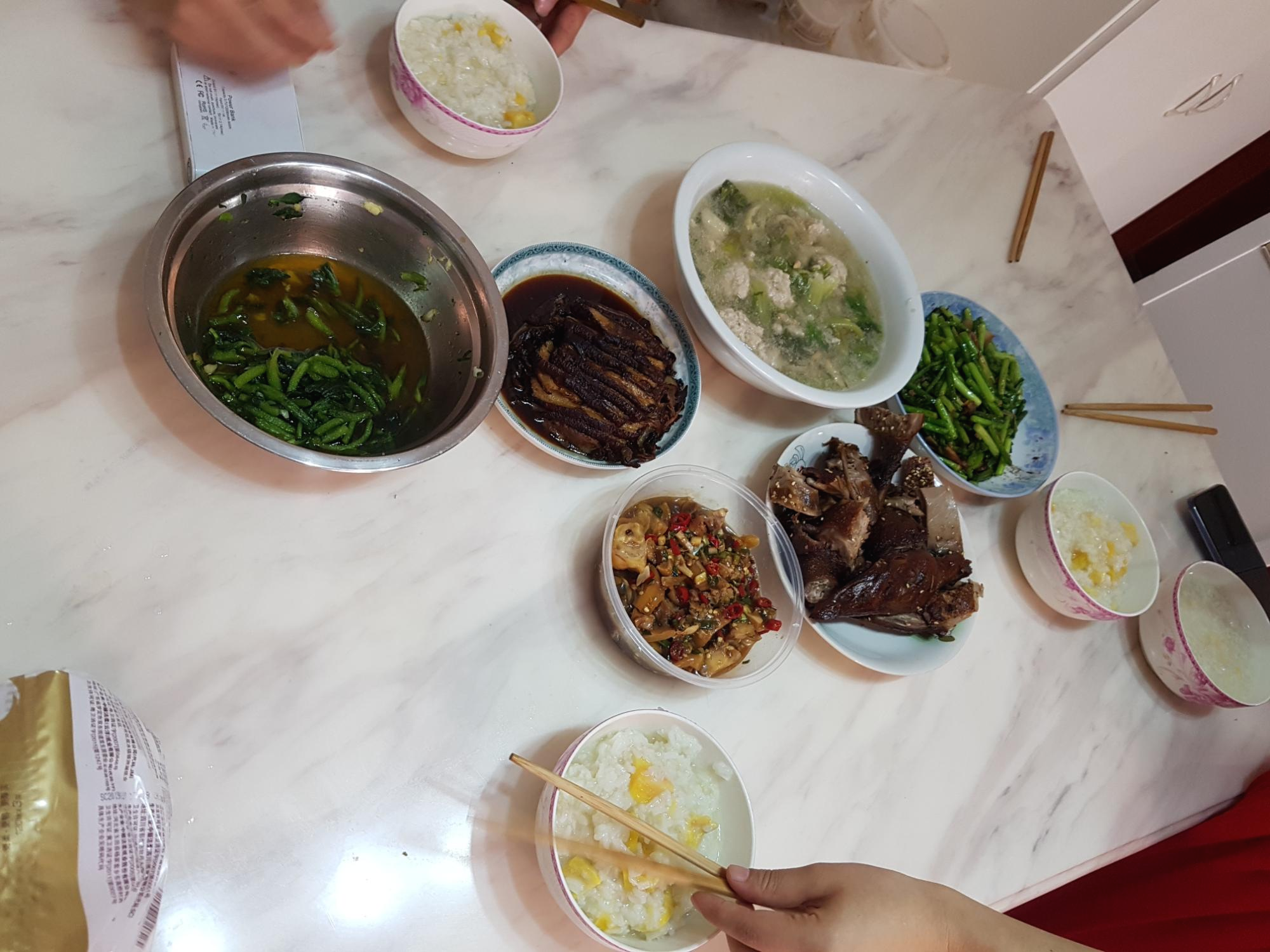 집에 도착하니 친구 아버님께서 열심히 요리를 하고 계십니다. 아주 놀라웠던 것 중 하나는 친구의 가족내에서 요리담당은 친구 아버님과 남편입니다. 중국 남자들이 집안일을 하는 비중이 아주 높다는 이야기는 익히 들었었는데 실제로 보니 새삼 놀랍습니다. 요리실력도 너무 좋으세요 ㅠㅠ 아버님이 요리를 하시는 동안 가족 중 여자들은 티비를 보거나 쉬면서 기다립니다. 보통 식사가 끝난 후 뒷정리나 설거지는 어머님과 친구가 합니다. 온 가족이 적절히 가사분담을 하고 육아도 함께 해나가는 모습이 정말 보기 좋았어요.