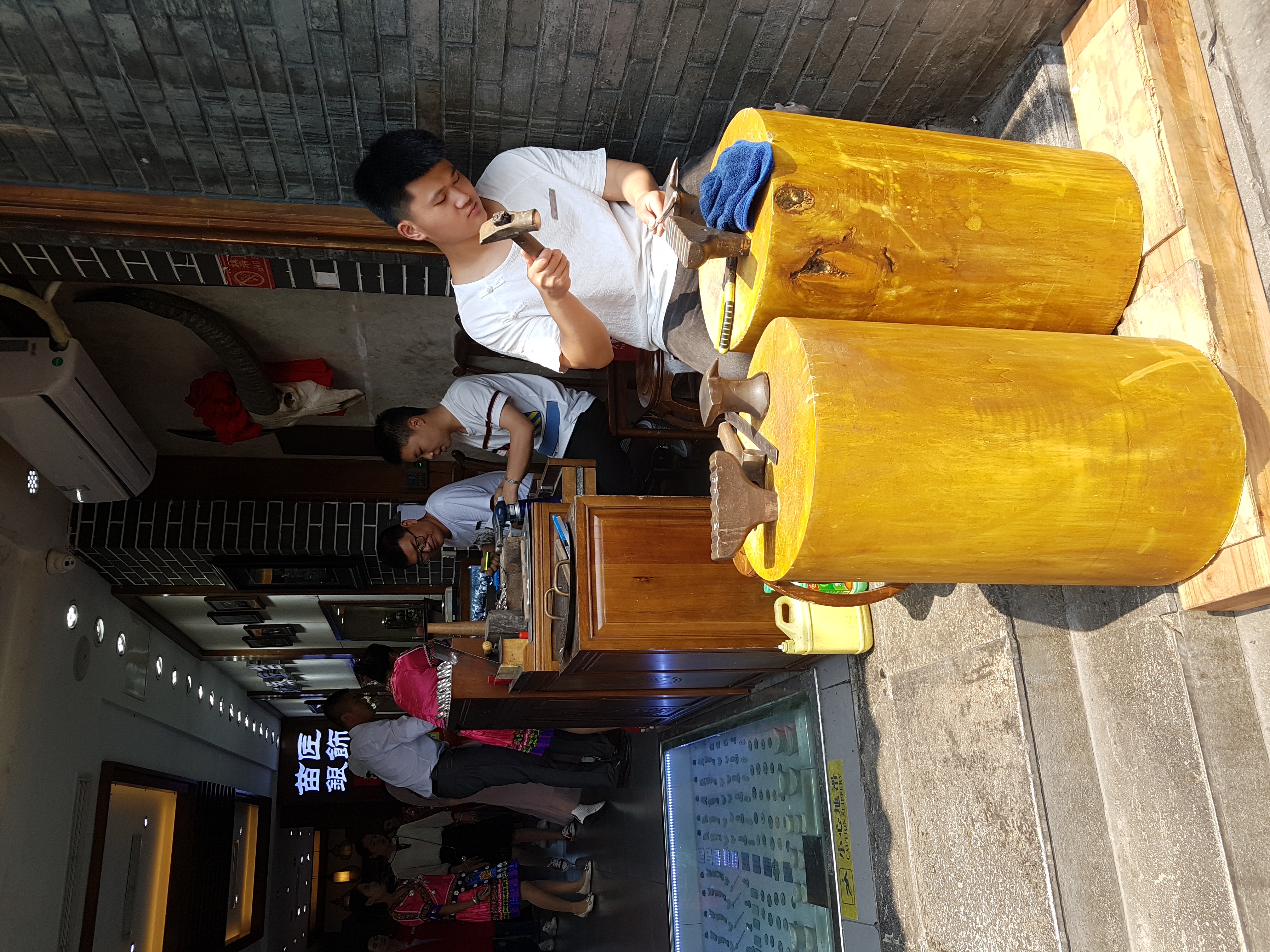 기념품을 사들고 나와 다시 골목을 돌아다녀봅니다. 각종 전통 기념품과 사람들이 더 모이기 시작하면서 공연 홍보 같은 것도 하고 있었어요. 중국에는 워낙 다양한 민족들이 있어서 각 민족 전통의상을 입고 가게 앞에 서계신 분들이 있었어요. 아마 가게마다 특정민족의 특색이 묻어나오는 기념품이나 상품들을 판매하거나, 공연을 하고 있는 듯 했습니다.