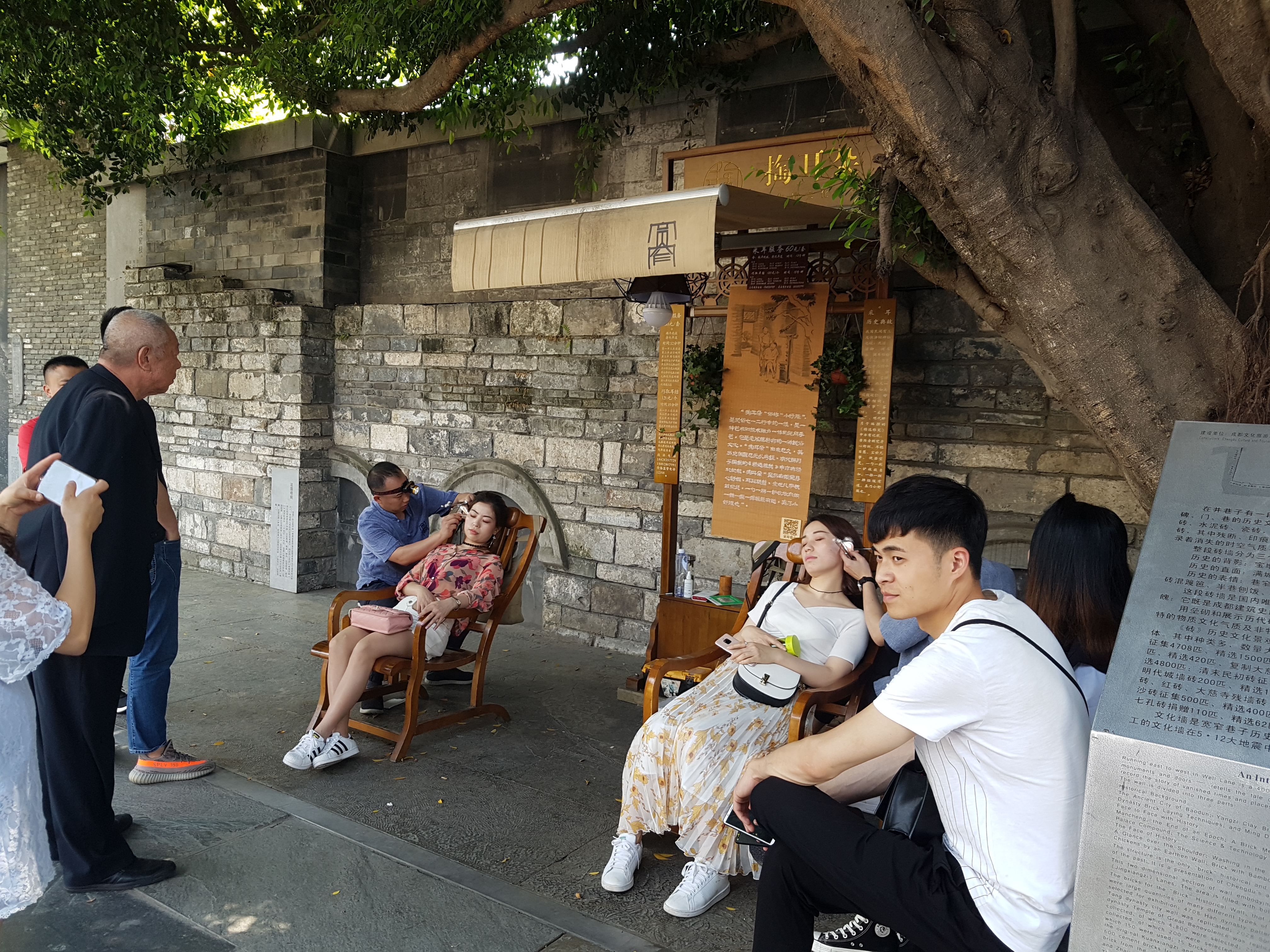 사람들이 점점 넘쳐나서 저희는 메인 골목을 빠져나와 뒷골목 한적한 곳을 찾아갔어요. 의도하고 간 것은 아닌데 본능적으로 한적한 곳을 찾다보니 찾게된 콴쟈이샹즈 가장 외곽에 있는 골목입니다. 신기하게도 이 골목에는 사람들이 거의 없었어요. 아무래도 이쪽 골목에는 먹거리나 가게가 많이 있지 않아서 그런 것 같아요. 하지만 이쪽 골목으로 들어가면 이 골목의 역사에 대해 설명되어 있는 글과 사진들을 구경하실 수 있어요. 게다가 조용히 산책하기 너무 좋은 골목이고, 그 유명한 귀청소도 이 골목에 있었습니다.