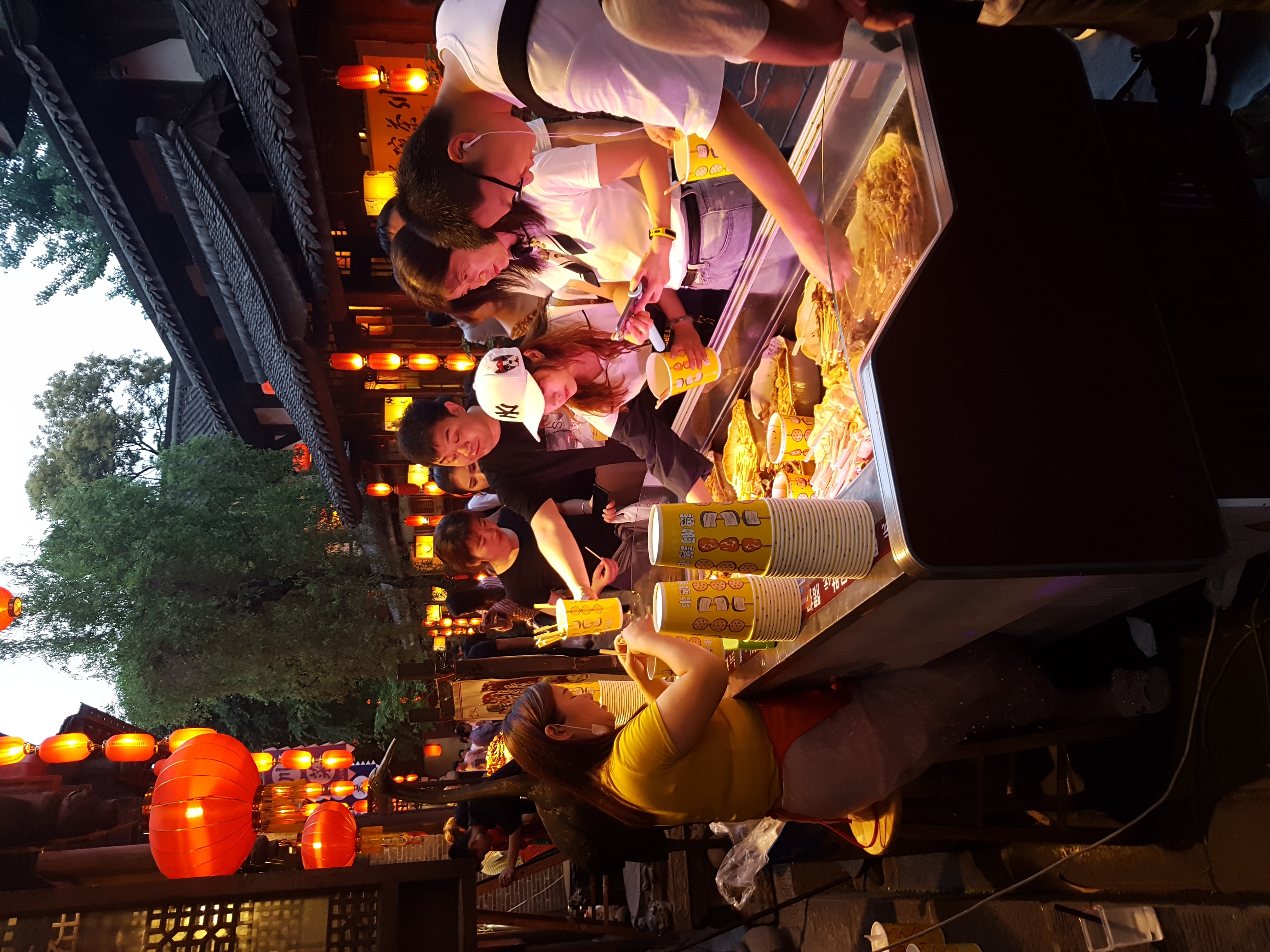 공연 관람을 마치고 홍등이 켜져있는 거리를 둘러보기로 합니다. 사실 너무 많은 먹거리가 있어 야시장 같은 느낌이라 여기서 간식거리로 한끼를 먹는 것도 좋을 듯 합니다. 여럿이서 간다면 시도해 볼 수 있는 종류도 정말 다양할 것 같아요. 하지만 관광지 답게 가격은 비싼 편이니 참고하셔야 할 듯 합니다.
