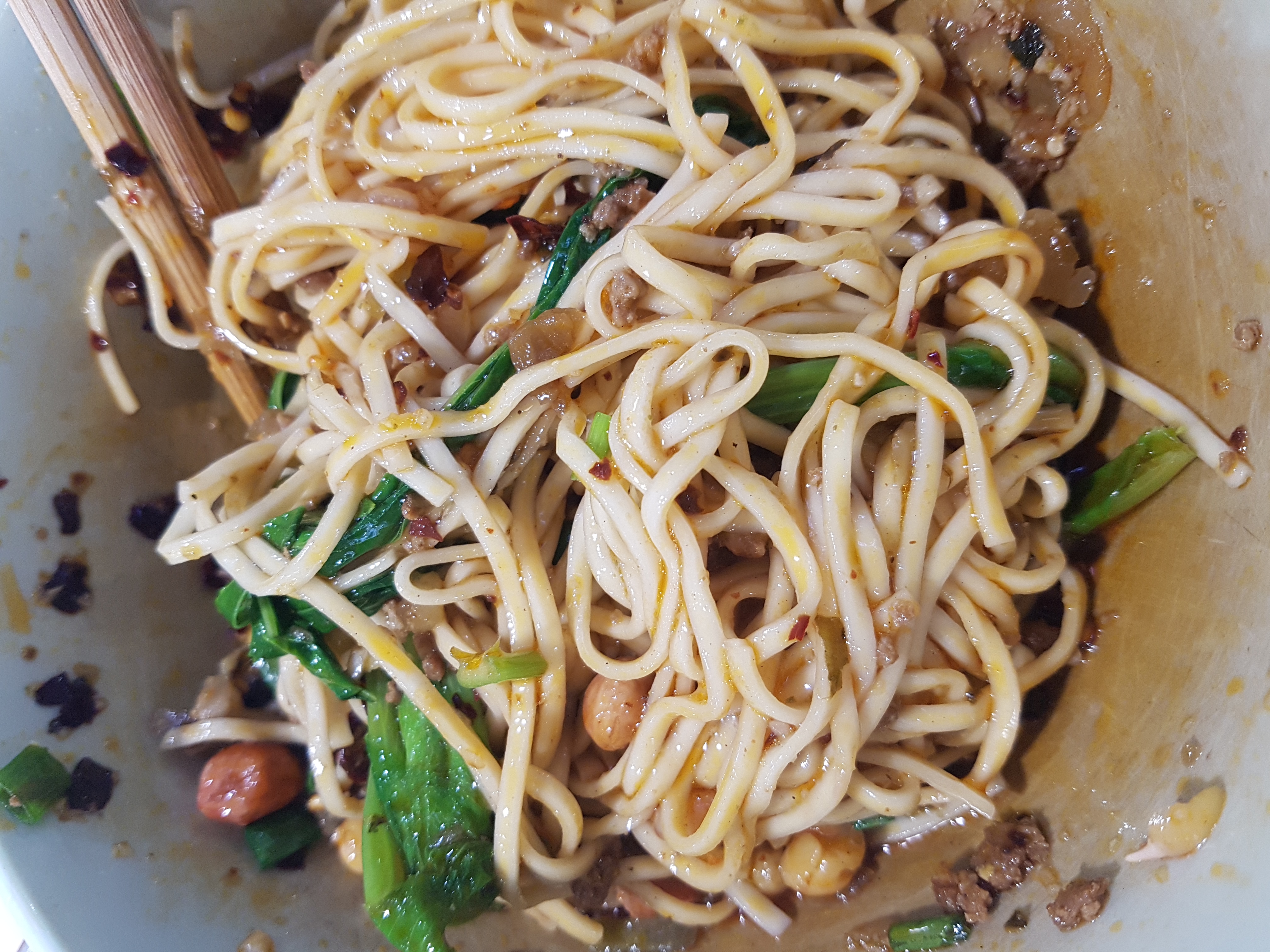 우리나라의 자장면과 정말 다르게 생겼죠? ㅎㅎ 맛도 꽤 다릅니다. 그런데 알고보니 중국에도 다양한 종류의 자장면이 있는가봐요. 청두의 자장면 맛은 일반적인 중국의 자장면 맛과 또 다르다고 하더라구요. 간고기가 꽤나 많이 들어가 있고 콩과 함께 청두 특유의 빨간 소스가 있습니다. 맵지는 않아요. 워낙에 이런 맛을 좋아하다보니 개인적으로는 역시 입맛에 잘 맞았습니다. 아무래도 기름에 비벼먹는 느낌이다보니 좀 느끼한 감이 있습니다. 양이 많다면 다 먹지 못했거나 탄산을 시켜야 했을 것 같아요.