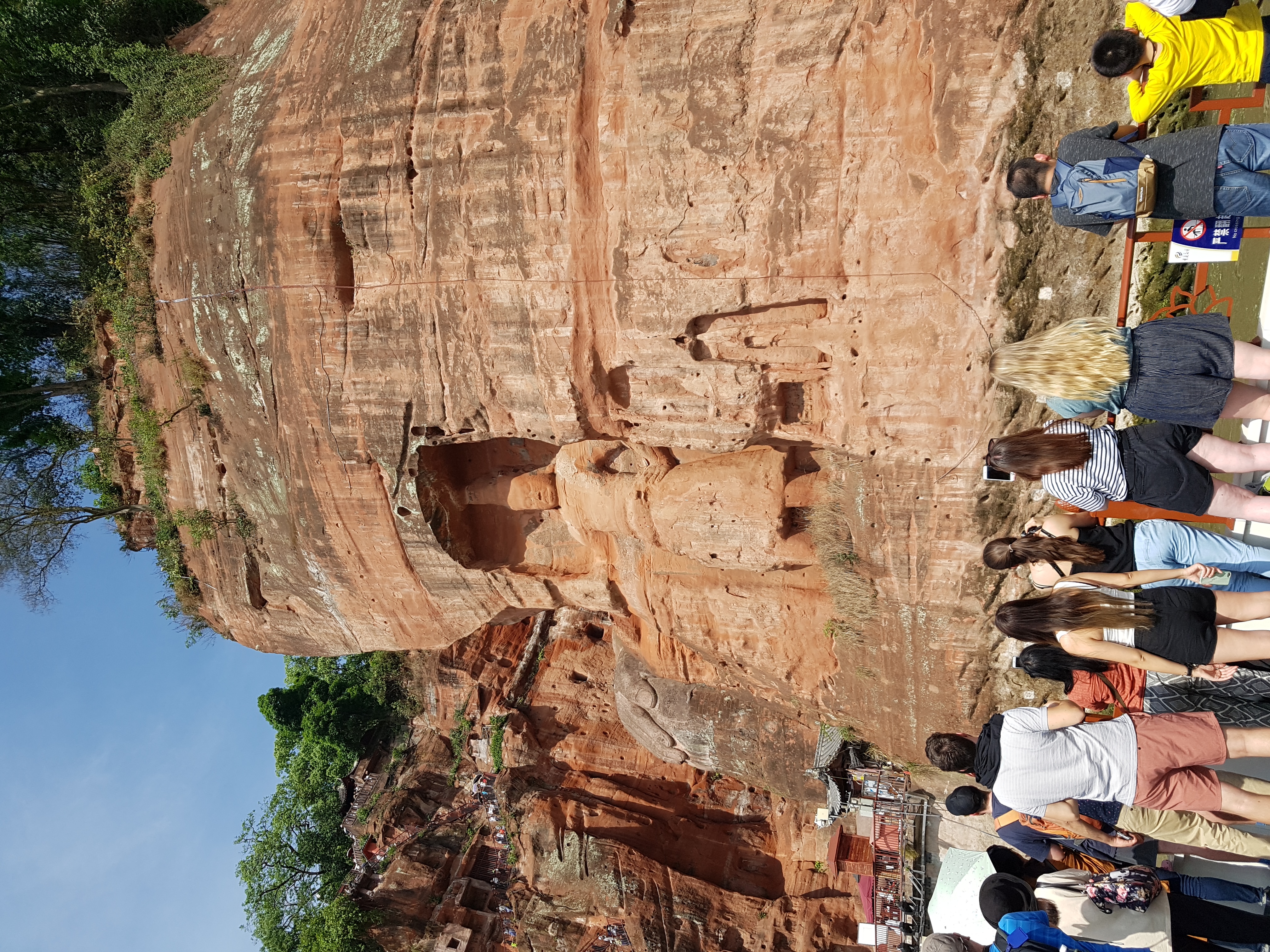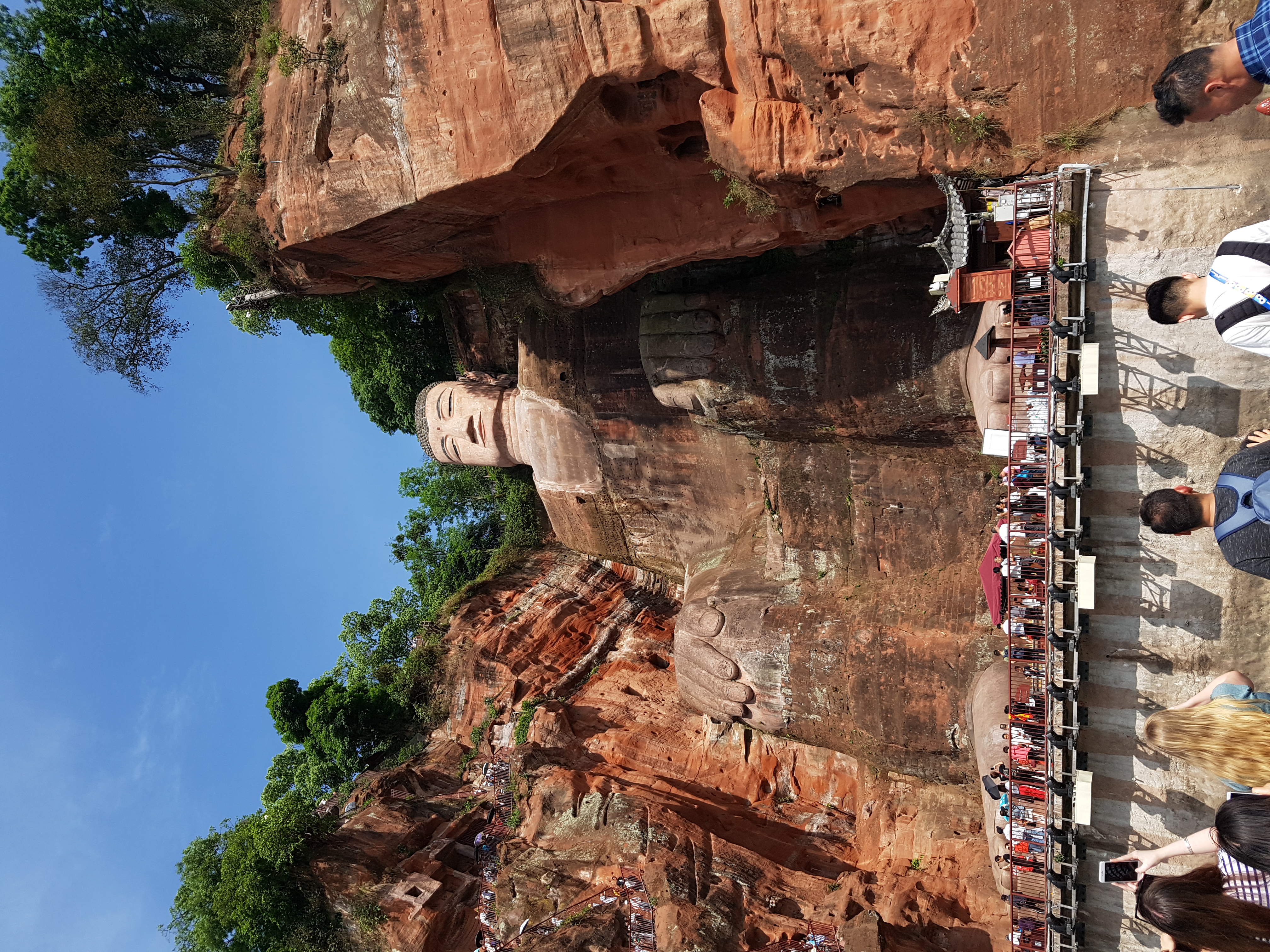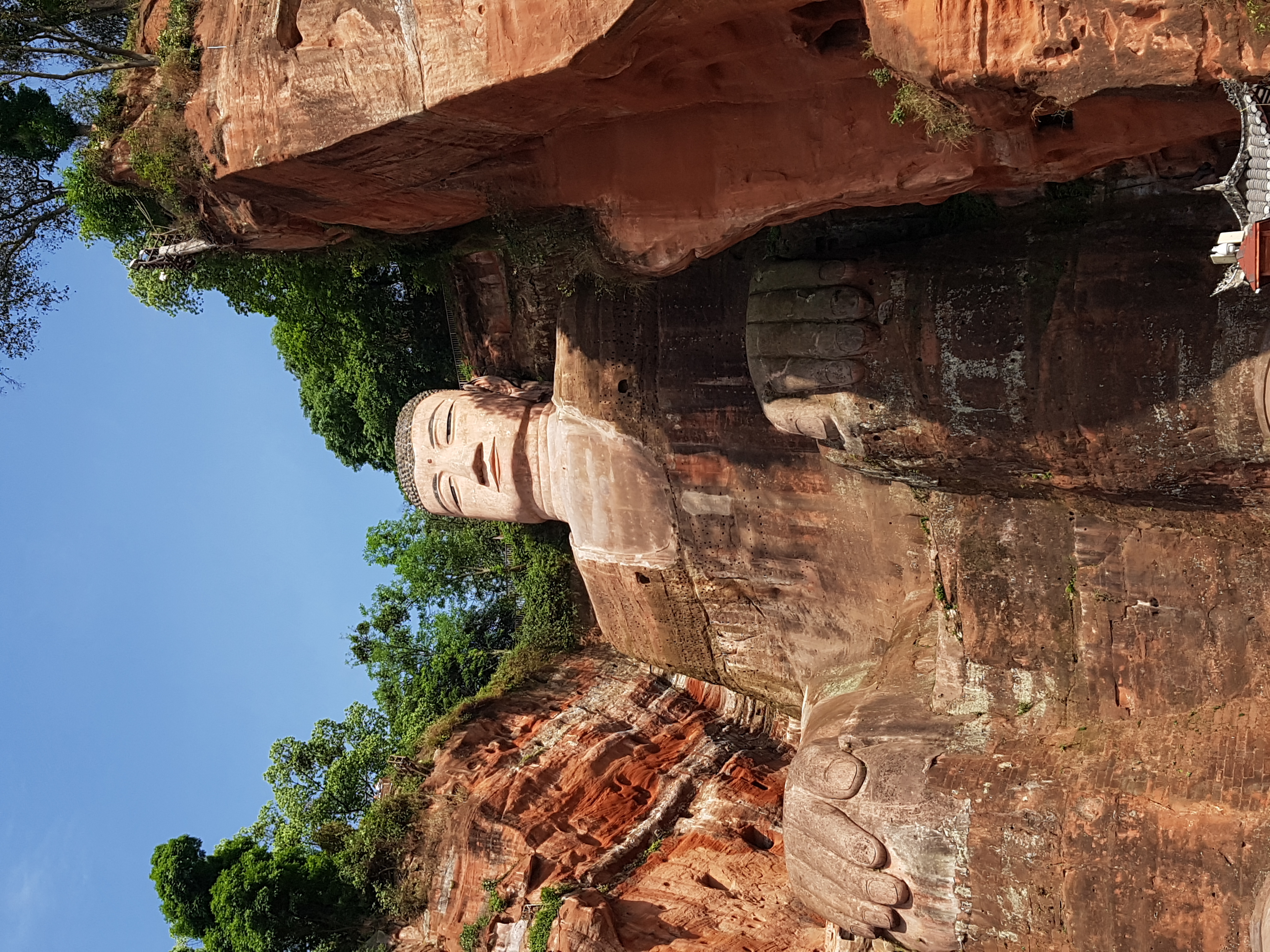 아침에는 추적추적 비가 내렸었는데 낙산대불로 이동하는 동안 날이 개기 시작하더니 해가 쨍쨍합니다. 낙산대불에 대해서는 청두에 도착하기 전까지는 알지 못했다가 친구의 추천으로 방문해보기로 결정했던 곳이었어요. 사실 한국에도 워낙 비슷한 관광지들이 많기도 하고 이러한 관광지에 크게 관심이 많은 편은 아니었지만 현지인의 추천이 있다보니 방문해야할 여행지 리스트에 넣어두게 되었습니다. 방문전 관련 정보를 찾다보니 정말 엄청난 크기의 불상이더라구요. 사진으로 봐서도 어느정도 크기일지 감이 오지 않았는데 실제로 보고 정말 놀랐습니다. 워낙 석불의 크기가 크다보니 석불 가까이 가기 전 아주 먼 거리에서도 석불이 보일정도 였습니다.