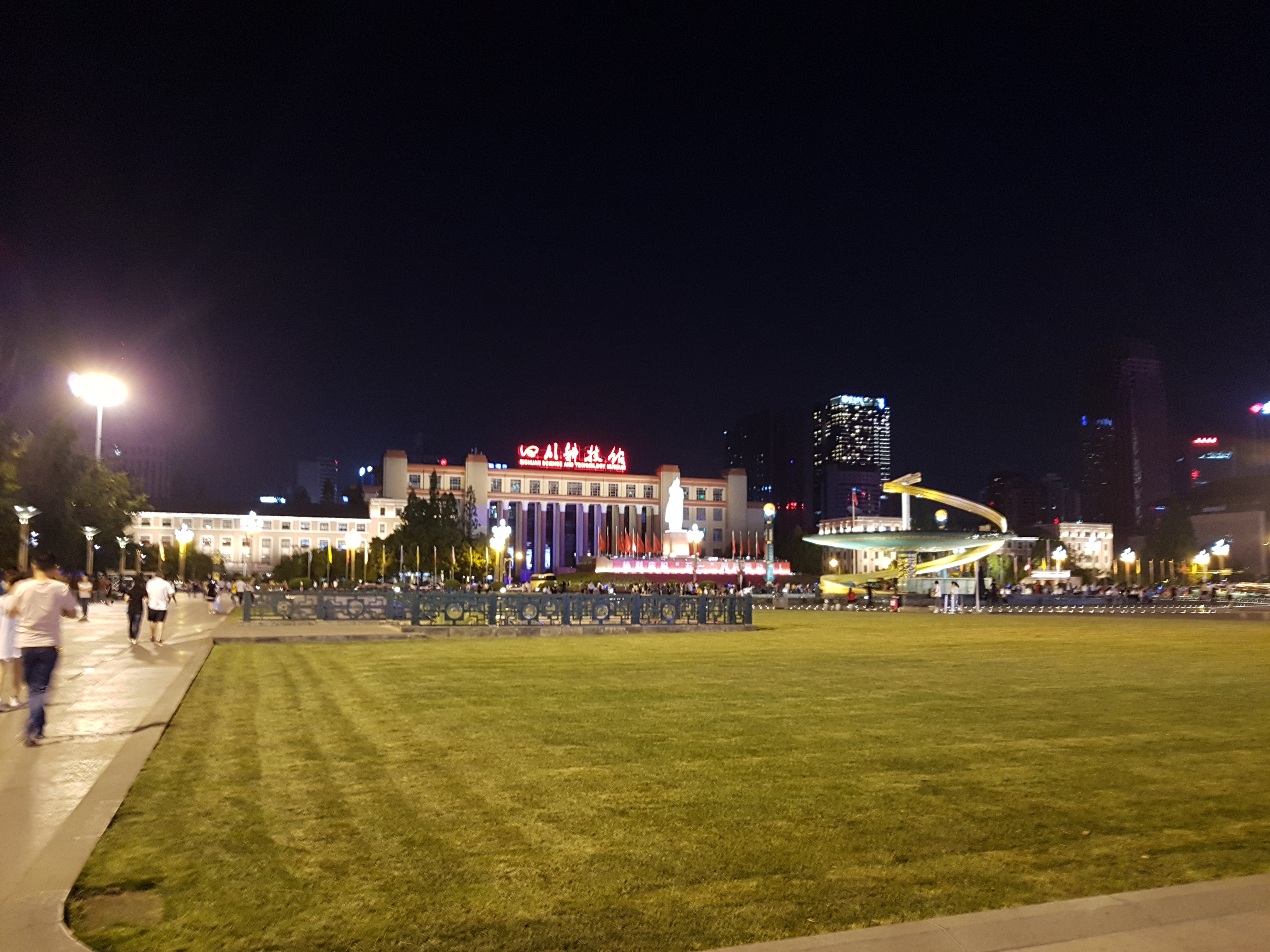 낮에도 멋있을 것 같지만 밤에 정말 예쁘더라구요. 청두에서 야경이 멋진 장소가 몇몇 있는데 텐푸 스퀘어도 야경이 정말 멋있었어요. 광장 크기도 워낙 넓고, 근처에 박물관도 있고, 서울역과 비슷하게 많은 노선이 환승하는 장소이기도 해서 늦은시간에도 많은 사람들이 있었습니다.