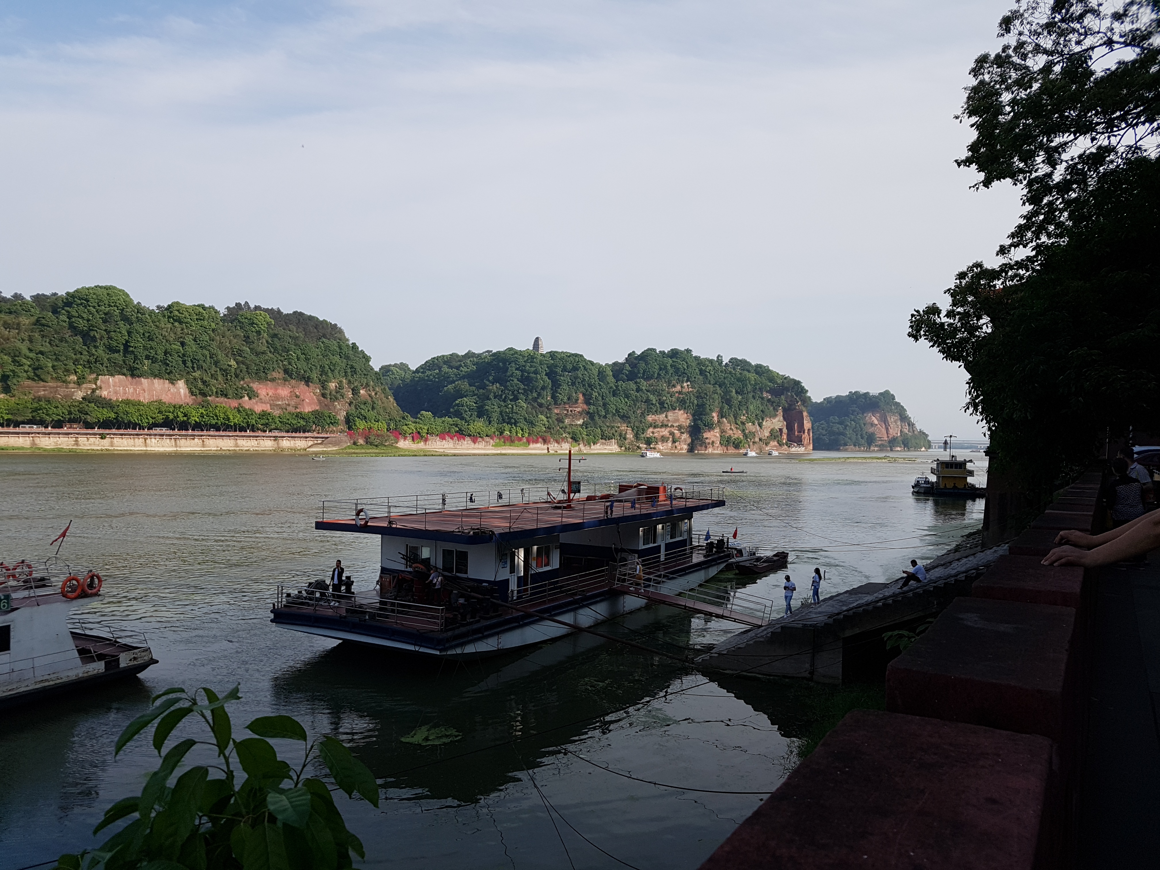 유람선으로 관람을 하게 되면 불상이 잘 보이는 앞쪽에서 잠시 세워줍니다. 이 시간동안 사진도 찍고 여유있게 불상을 감상할 수 있습니다. 유람선을 타고 있으면 불상의 바로 발밑에서 보는 것과는 달리 어느정도는 거리가 떨어져 있게 되는데, 그럼에도 불구하고 불상 전체를 한 화면에 담는게 쉽지 않은 정도입니다. 높이 71m 세계최대 석불의 위엄이 느껴집니다. 아직도 그때 찍은 동영상이나 사진들을 보면 실제 봤을때의 느낌이 생생해요. 개인적으로 청두에서 손꼽는 관광지 입니다.