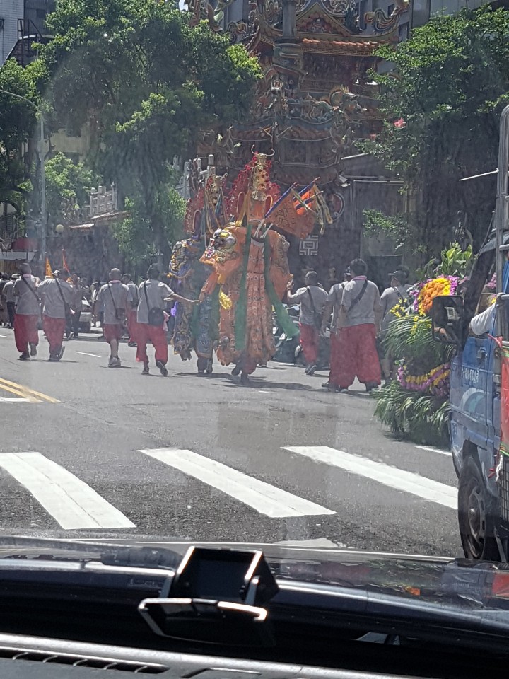 한가지 일을 해결하고 배가 고파 급하게 맥도날드 드라이브 쓰루에서 햄버거를 구매하러 갔습니다. 가는길에 발견한 긴 행렬. 대만에서는 워낙 종교가 다양하고 믿는 신도 많기 때문에 이러한 행렬이나 행사를 자주 볼 수 있다고 해요. 이날 봤던 행렬은 꽤 많은 사람들이 믿고 있는 신이라서 행사가 제법컸습니다. 시내 한복판의 도로에 길게 늘어선 행렬이 이어졌어요.