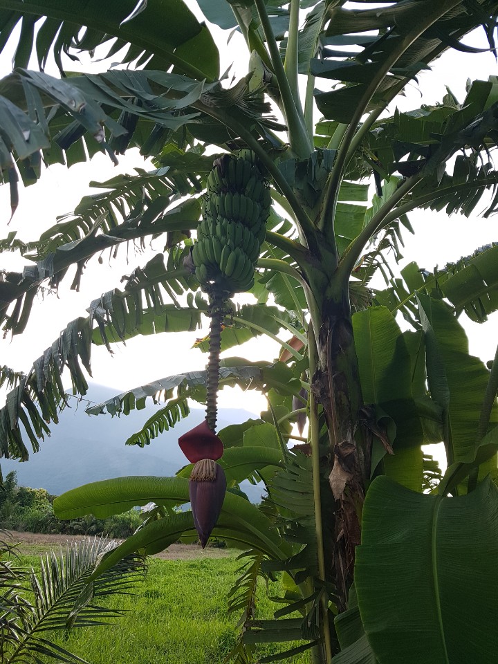 이 지역의 바닷가는 모래사장이 아니라 자갈로 뒤덮인 특징이 있다고 하더라구요. 한적한 시골길을 운전하며 가다가 친구가 바나나 나무가 있다며 잠시 차를 세웠습니다. 바나나 나무에 열매가 달려있는 모습을 보지는 못했어서 구경했는데 딱히 농장도 아니었고 그냥 조용한 시골길에 나무가 몇그루 있었어요. 열매가 제법 큽니다.