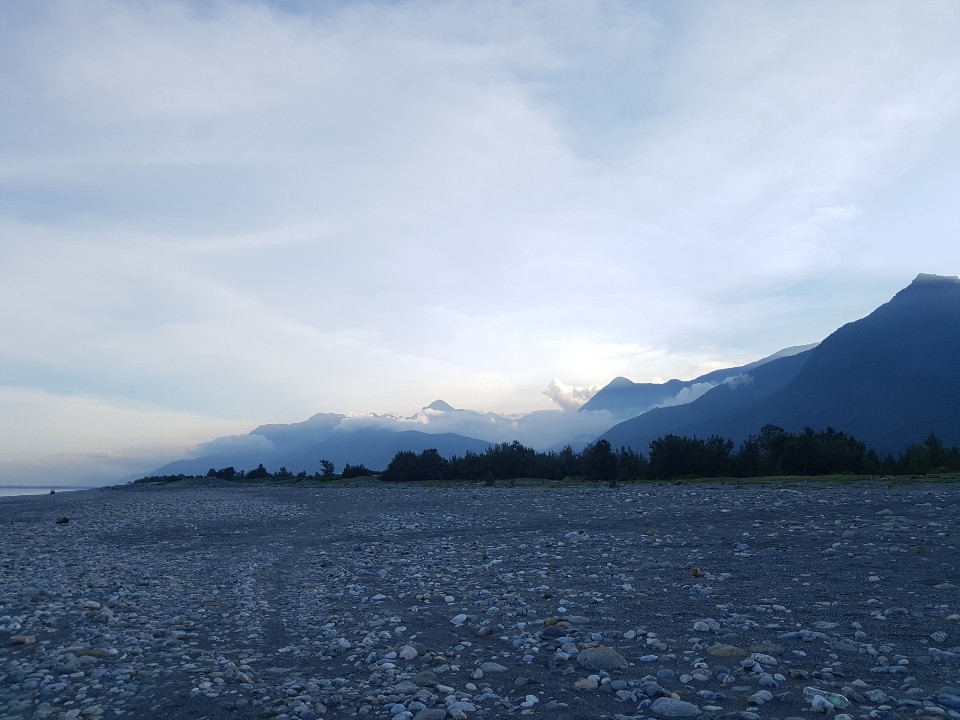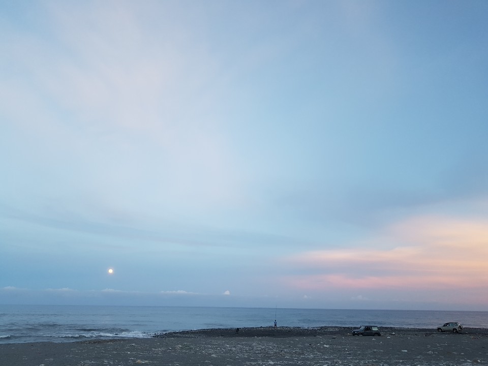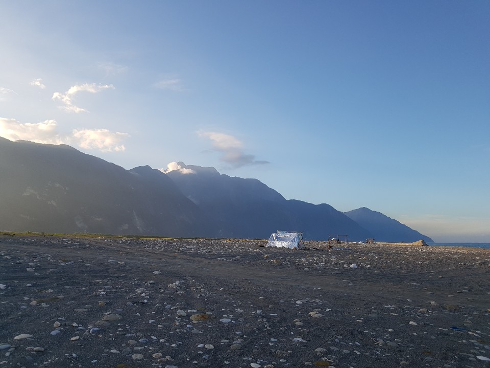 탁트인 경관과 함께 바닷가를 둘러싸고 있는 산맥이 정말 멋집니다. 핸드폰 카메라로 생생한 느낌을 담을 수 없는게 정말 아쉬웠어요 ㅠㅠ 바닷가에는 게스트하우스에서 정보를 건네어 준 손님의 말처럼 낚시를 하고 있는 사람들이 정말 많았습니다. 그리고 자주 오는 사람들이 있는 건지 움막처럼 만들어 놓은 것들도 여러개 있었고 불을 피운 흔적도 꽤 많았습니다.