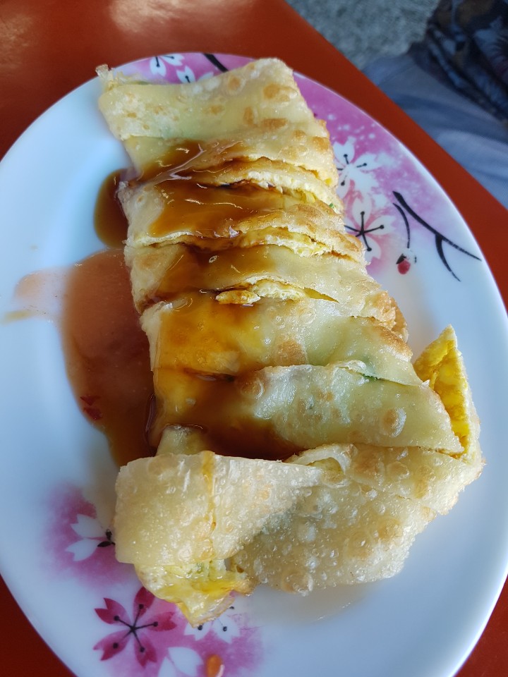 대만에서 조식으로 꽤나 여러번 먹었던 음식입니다. 얇은 전병과 밍밍한 어묵같은 맛이 나는 팬케익입니다. 친구는 영어로 팬케익이라고 설명해주었지만 맛은 굉장히 동양적입니다 ㅎㅎ 대만의 음식은 확실히 간이 많이 세지 않은편입니다. 모두 계란과 기름이 들어가고 전처럼 부쳐먹는 음식들이지만 생각보다 많이 기름지지는 않습니다. 간단하게 아침으로 먹기엔 참 좋은 요리인 것 같아요. 편의점에서 커피를 사고 식당에서 팔고있는 콩국물 같은것을 주문해서 함께 먹었습니다.