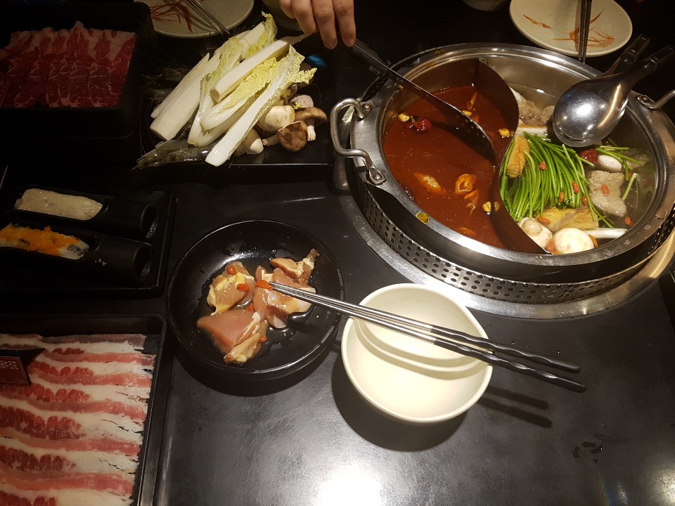 함께 간 대만 친구들의 독특한 먹는 방식은 홍탕에는 고기만 넣어먹고 백탕에는 야채, 해산물, 고기등을 넣어먹습니다. 처음에 제가 홍탕에 야채를 넣으니 깜짝 놀라길래 물어보니 친구는 홍탕에 야채를 넣으면 야채가 너무 매워서 먹을 수 없다고 하더라구요. 아마 매운것을 잘 먹지 못하는 제 친구 특유의 먹는 방식 같습니다.