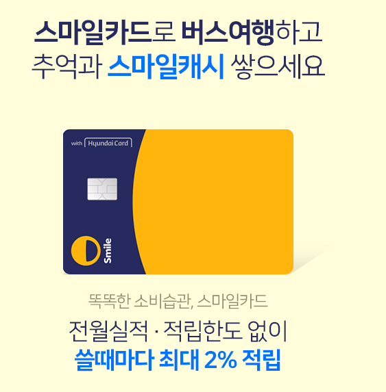 한달에 한번정도 고속버스를 사용하는 경우에는 혜택이 나쁘지 않다는 생각이 듭니다. 게다가 지하철,택시 비용도 10%할인이 가능하고 편의점 이용시에도 10% 할인혜택을 받을 수 있어서 생활,교통 목적으로 사용하기엔 좋아보여요.