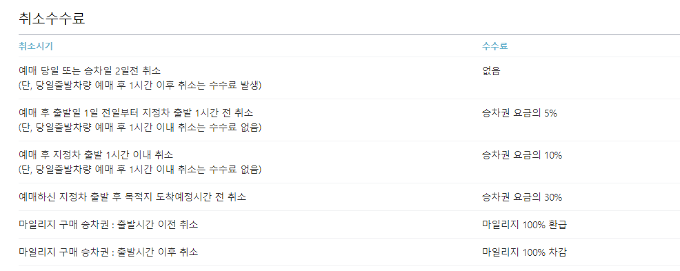 -예매 당일 또는 승차일 2일전까지는 취소 수수료가 발생하지 않습니다.