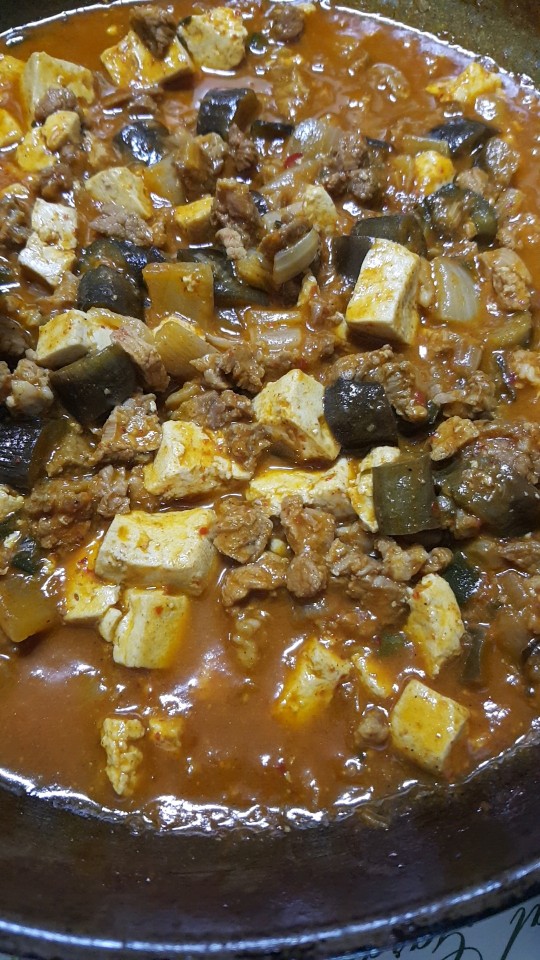 다음번에 또 마파두부를 해먹게 되면 고기를 넣지 않은 깔끔한 마파두부를 만들어 먹어도 좋겠다는 생각이 들었어요. 간고기는 필요해서 한번 사고 나면 한번에 많은 양을 조리하는 경우가 드물어서 소분해서 냉동해 넣고는 하는데, 꼭 두번째 활용할때에는 볶을때 잘 뭉치기도 하고 해동하기도 일반적인 고기에 비해서 더 번거롭더라구요. 물도 더 많이 나오는 것 같고..