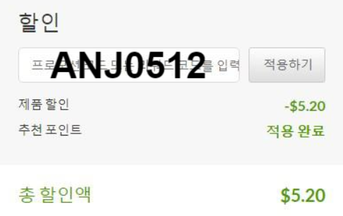 아이허브에서 상품을 주문하고 결제 시 추천코드를 적을 수 있습니다. 원하는 상품을 장바구니에 담고 결제를 진행하면 아래와 같은 창이 보입니다.
