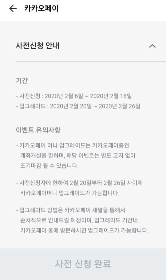업그레이드 방법은 추후 카카오페이 채널이나 이번에 카카오페이에서 메세지를 보낸 것 처럼 사전 신청자들에게 순차적으로 안내될 것으로 보입니다.