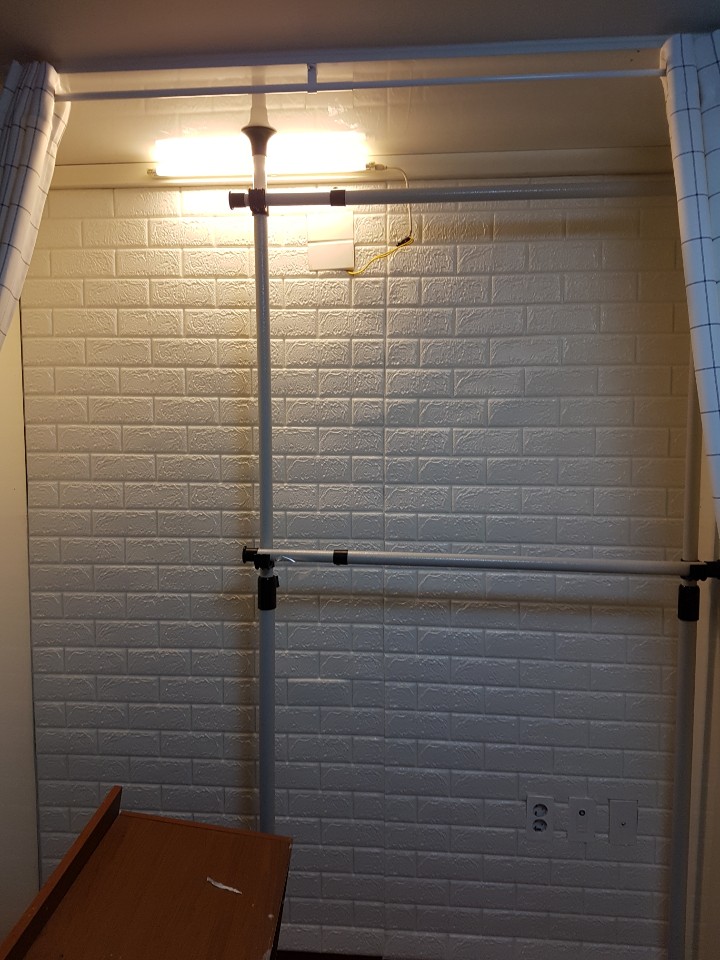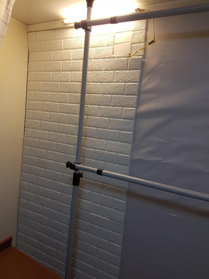 사실 옷장 용도로 쓸거라서 옷을 걸고 커튼까지 치고나면 벽지 부분이야 신경쓰지 않아도 되었겠지만 또다른 문제가 있었습니다.