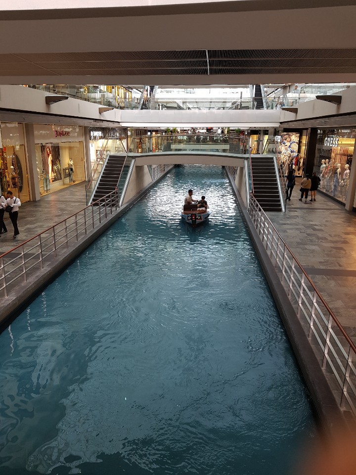쇼핑몰 지하로 내려가면 쇼핑몰 내부에 물이 흐르는 길이 만들어져 있습니다. 작은 배를 타고 쇼핑몰을 둘러볼 수도 있는건지 종종 배가 지나가는 모습도 보입니다.