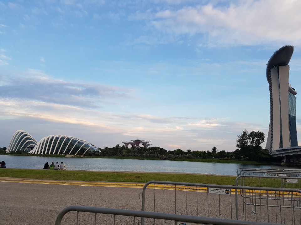 플라이어 맞은편으로 보이는 싱가포르 유명 관광지들의 모습입니다. 마리나베이샌즈 호텔, 가든스 베이 더 베이, 플라워 돔 등이 보입니다. 공원이나 강가에 앉아서 멍때리고 있는걸 좋아하기때문에 무척 마음에 드는 장소였습니다. 마리나베이에 비해 관광객들이 더 많지도 않아 조용히 앉아 있을 수 있었어요.