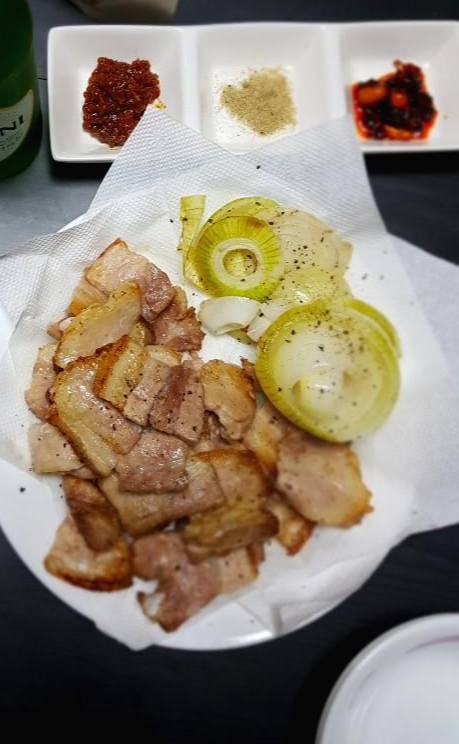 일반적으로 쉽게 구워 먹는 이미 썰려진 삼겹살을 구웠을 때의 모습입니다. 저는 개인적으로 통삼겹보다 얇게 썰린 삼겹살을 구워 먹는게 정말 맛있더라구요. 삼겹살의 끝부분은 바삭하게 익고 중간 부분은 적당히 잘 익는데다가 기름기도 제법 많이 빠지다보니 정말 고소하고 느끼함도 덜합니다.