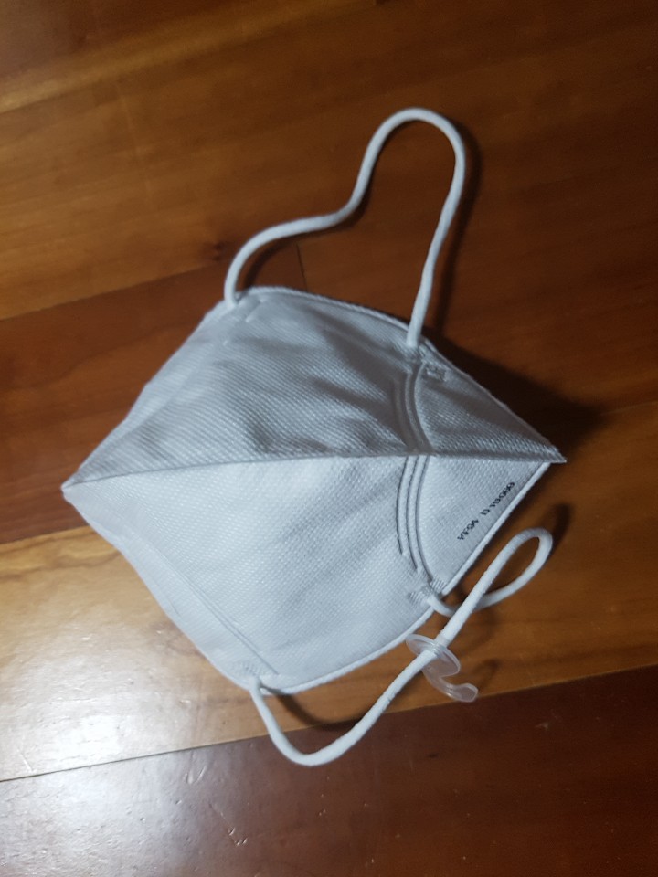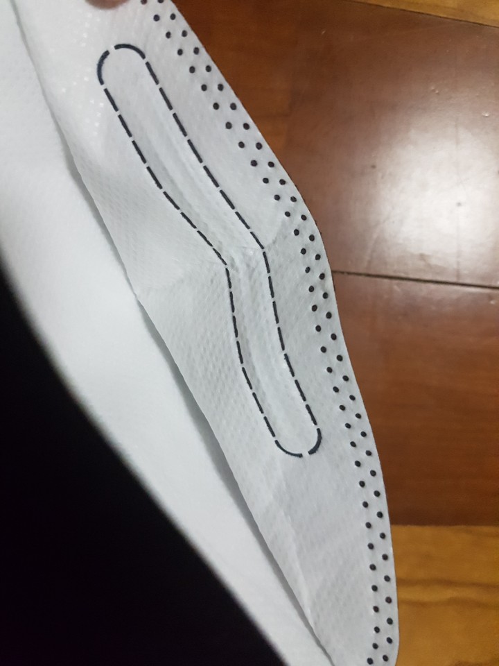 코 부분에는 얼굴 윤곽에 따라 접어서 고정될 수 있는 철사가 들어있어 마스크를 착용 후 꼼꼼하게 눌러주면 됩니다. 가격이 저렴해서인지 금액대가 높았던 마스크나 인지도가 있는 마스크에 비해서 확실히 얇다는 느낌이 있습니다. 접어지는 형태나 굴곡도 약간 어설픈 느낌이 있구요. 하지만 가격이 부담스럽지 않고, KF94 등급에 가로로 접히는 구조가 마음에 들어서 잘 착용하고 있습니다.