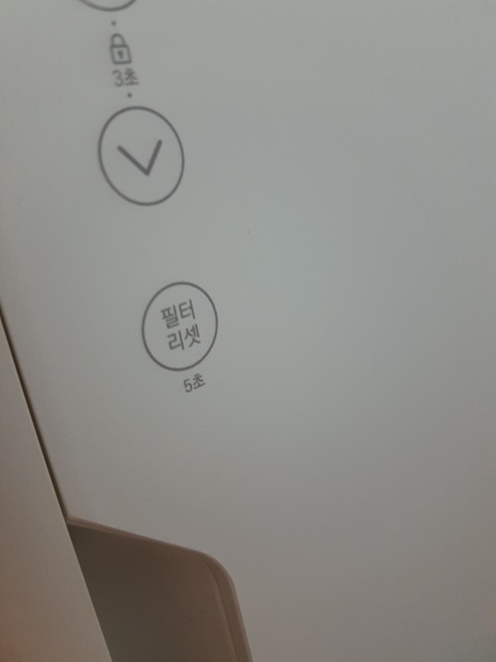 필터리셋 버튼을 약 5초간 길게 눌러줍니다. 전자음이 나면서 필터교체 표시등에 들어왔던 불이 사라집니다.