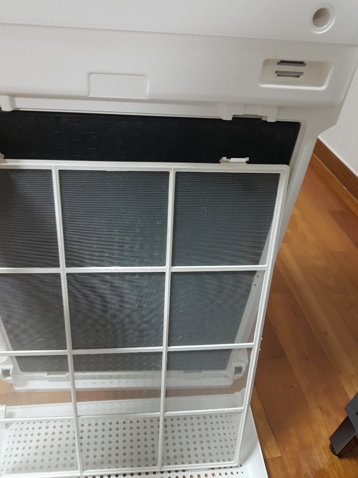 필터를 교체하고 나니 기분탓인지는 몰라도 바람도 더 세게 나오는 것 같은 느낌이 들었어요. 집진필터 외에 탈취필터도 교체할때 자세히 보니 내부에 먼지가 많이 끼어 있더라구요 ㅠㅠ 프리필터 이외에 다른 필터들은 딱히 청소해줄 방법이 없으니 생각나는대로 프리필터와 청정기 틀 내외부라도 자주 닦아 주어야 할 것 같습니다.