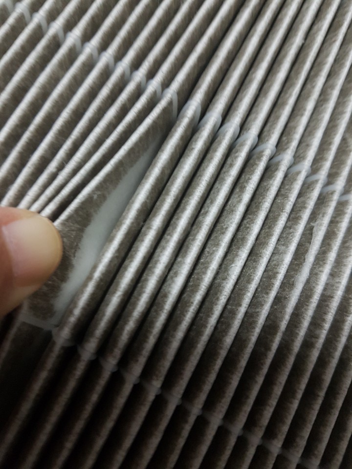 처음 구매시 장착되어 있던 탈취필터는 정확하게 딱 고정이 되는 느낌이었는데 새로 구매한 세트는 살짝 헐거운 느낌이 났습니다. 하지만 겉에 프리필터를 장착하면 헐거운 상태이더라도 고정이 되기때문에 크게 문제될 것은 없었어요.
