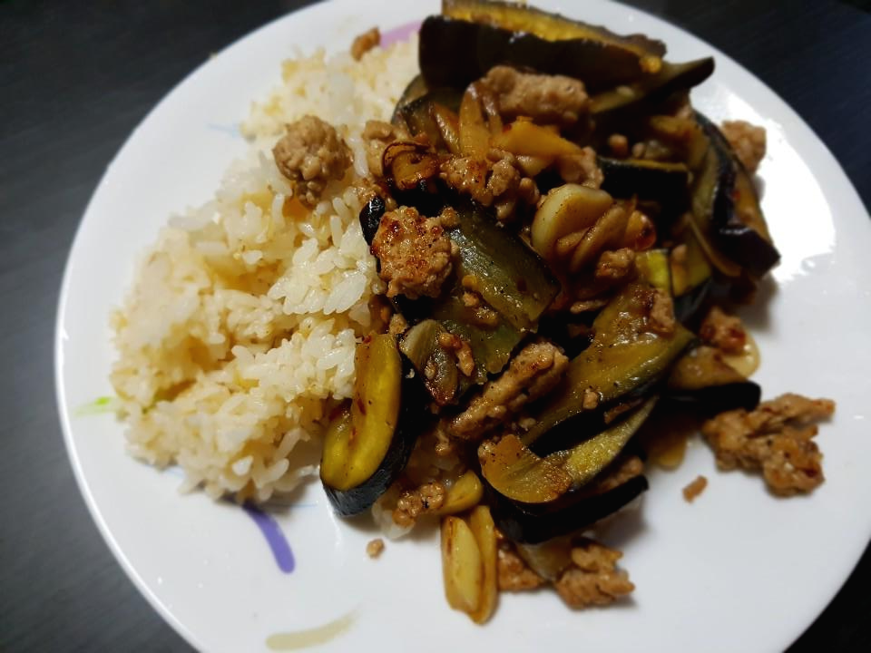 마늘과 가지에 만능간장을 넣고 휘리릭 볶아 만든 가지덮밥입니다.