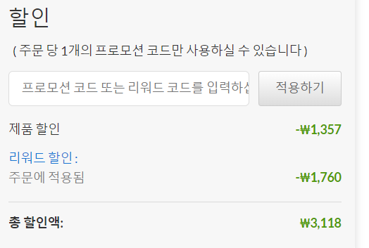 할인란에 프로모션코드 혹은 리워드코드를 입력할 수 있는 곳에