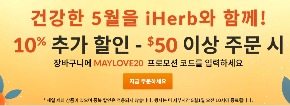 5월 가정의 달을 맞아 특별 할인코드가 공개되었습니다. 해당 할인코드는 아이허브에서 총 구매금액 50$이 넘으면 사용 가능합니다.