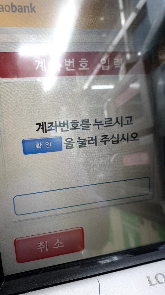 출금하려고 하는 계좌의 번호와 잔액등이 표시됩니다.