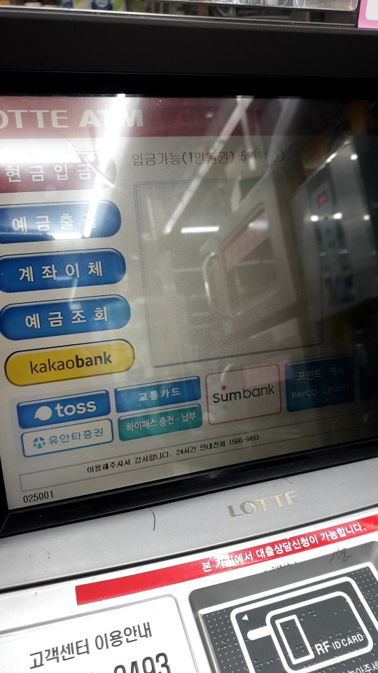 수수료 0원으로 표기되어 있네요. 통장이나 카드가 없어도 스마트폰에 카카오뱅크 앱만 있으면 이렇게 가까운 편의점에서 출금이 가능하니 정말 편리합니다.