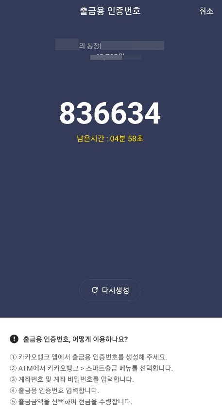 1. 카카오뱅크 앱에서 출금용 인증번호를 생성해 주세요.