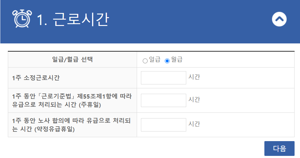 각 단계별로 근무조건을 빈칸에 채워주시면 됩니다.