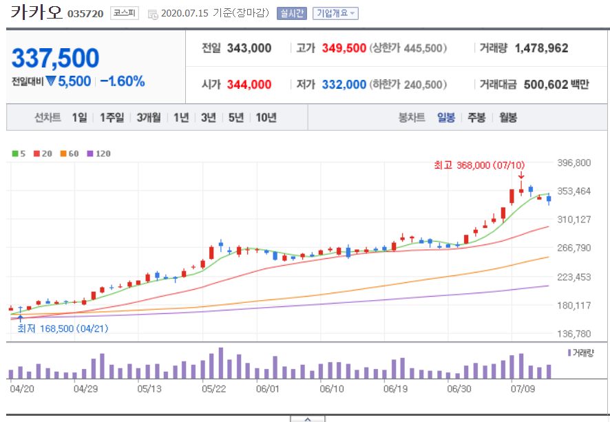 카카오 377,500원