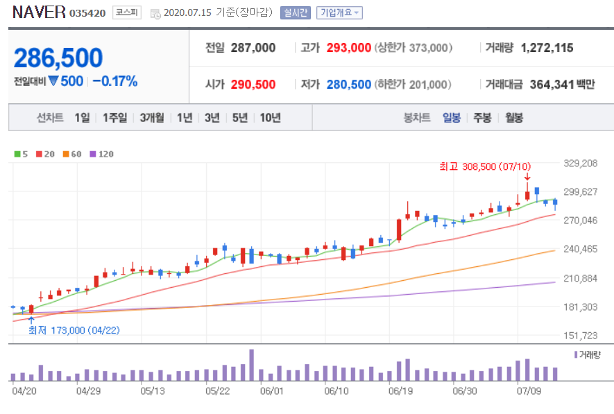 네이버 286,500원