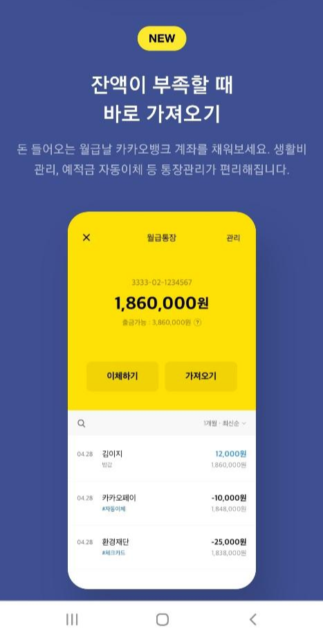 저는 카카오뱅크를 주거래은행으로 사용하고 있고, 지출통장으로 송금을 하거나 타계좌에서 입금받아야 할 일이 자주 있다 보니 엄청 유용하게 사용할 것 같아요.
