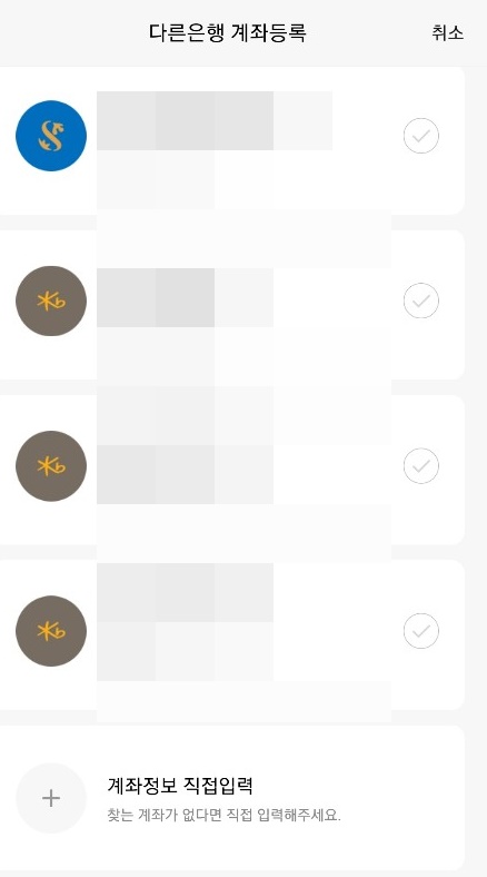 만약 연결하고 싶은 계좌가 목록에 없다면 하단의 계좌정보 직접 입력을 통해 연결해 주세요.