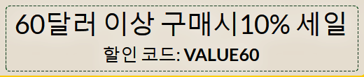 총 60 달러 이상 구매 시 10% 할인코드 VALUE60