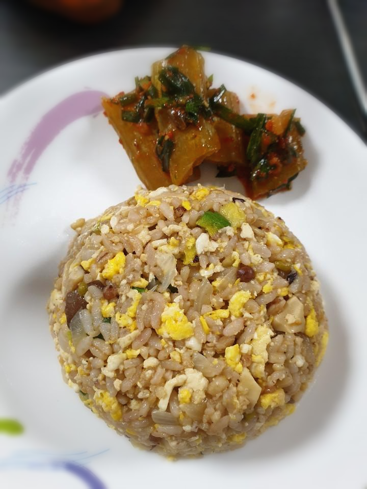 냉장고에 자투리 야채들이 하나 둘 쌓여가면 한 번씩 만드는 메뉴 중 하나가 볶음밥입니다. 들어가는 메인 재료에 따라서 다양한 볶음밥을 만들 수 있고 소분해서 냉동보관해두면 든든한 비상식량이 되기도 해서 일부러 만들어 놓기도 합니다. 이 날은 찌개를 만들어 먹고 남은 두부가 있어 두부요리를 고민하다가 두부 볶음밥을 만들어 봤습니다.