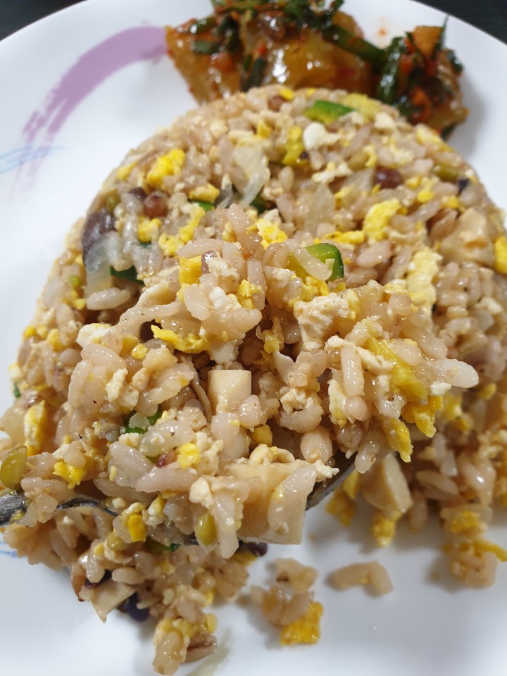 계란 ( 계란을 빼고 만든다면 채식 볶음밥을 만들 수 있습니다. )