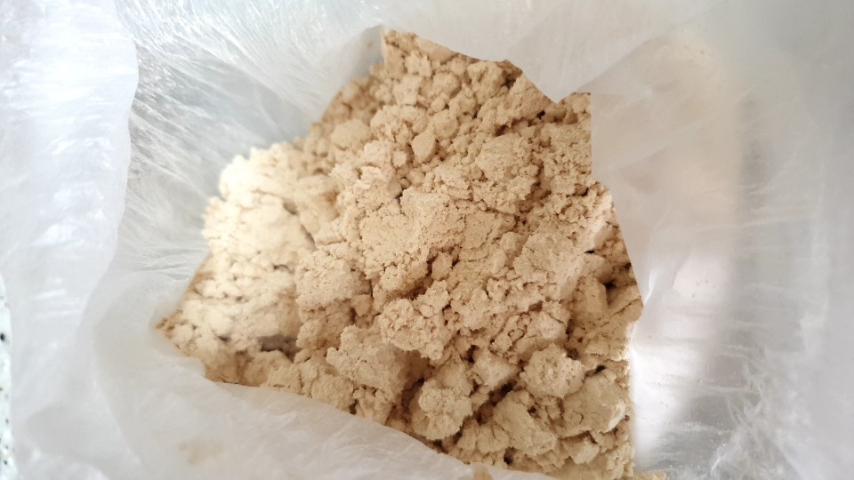 콩가루 소 입니다. 고소한 콩가루에 황설탕을 섞어서 달달한 소를 완성해줍니다.