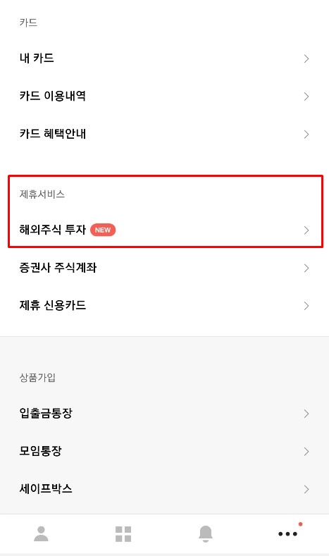 저는 카카오뱅크를 사용하고 있고 한국투자증권 앱도 사용하고 있기 때문에 간단하게 카카오뱅크를 통해서 미니스탁에 가입을 했습니다. 먼저 카카오뱅크를 사용하시는 경우 카카오뱅크 메뉴에서 제휴서비스를 찾아주세요.