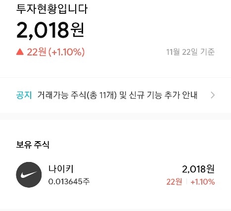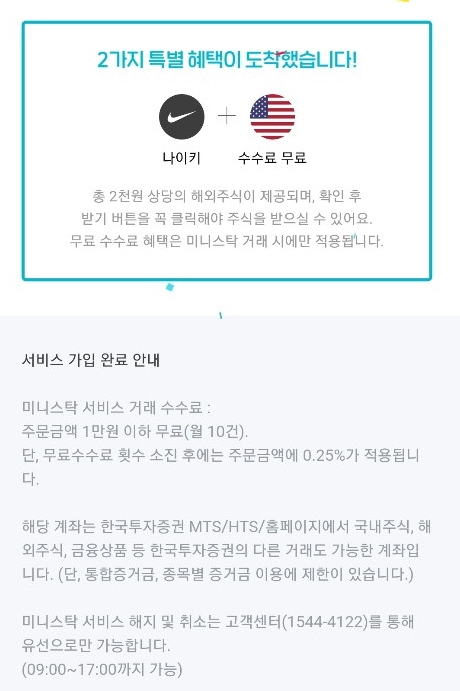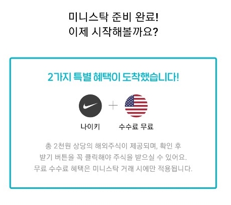 가입을 완료하고 받을 수 있는 또다른 혜택입니다. 2천원 상당의 해외주식이 랜덤으로 제공되는데 저는 나이키 주식을 받았습니다.